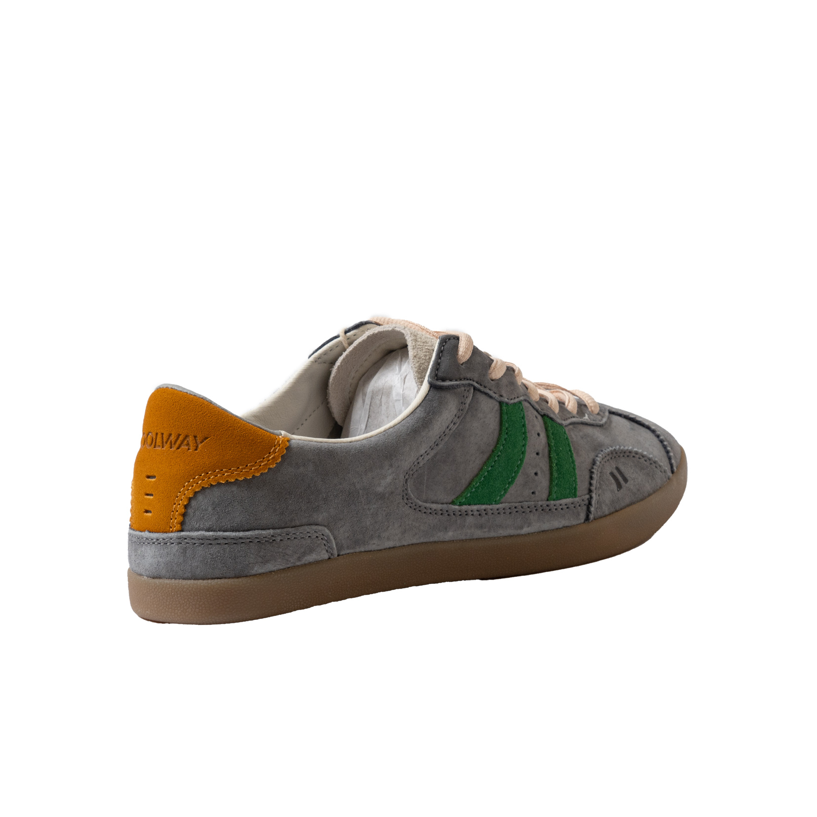 Zapatilla baja de serraje, interior y lengüeta en piel.. Cuello acolchado. Parte delantera reforzada. Suela flexible de goma/caucho.