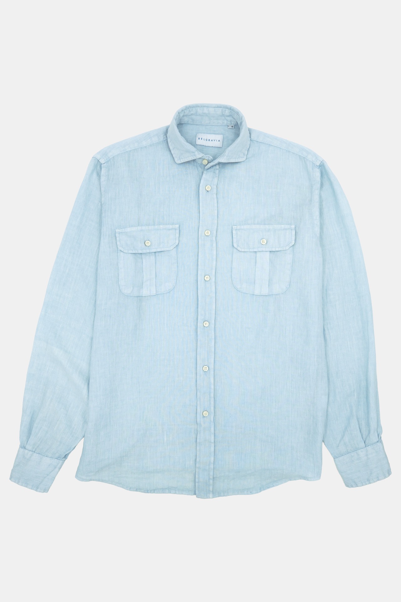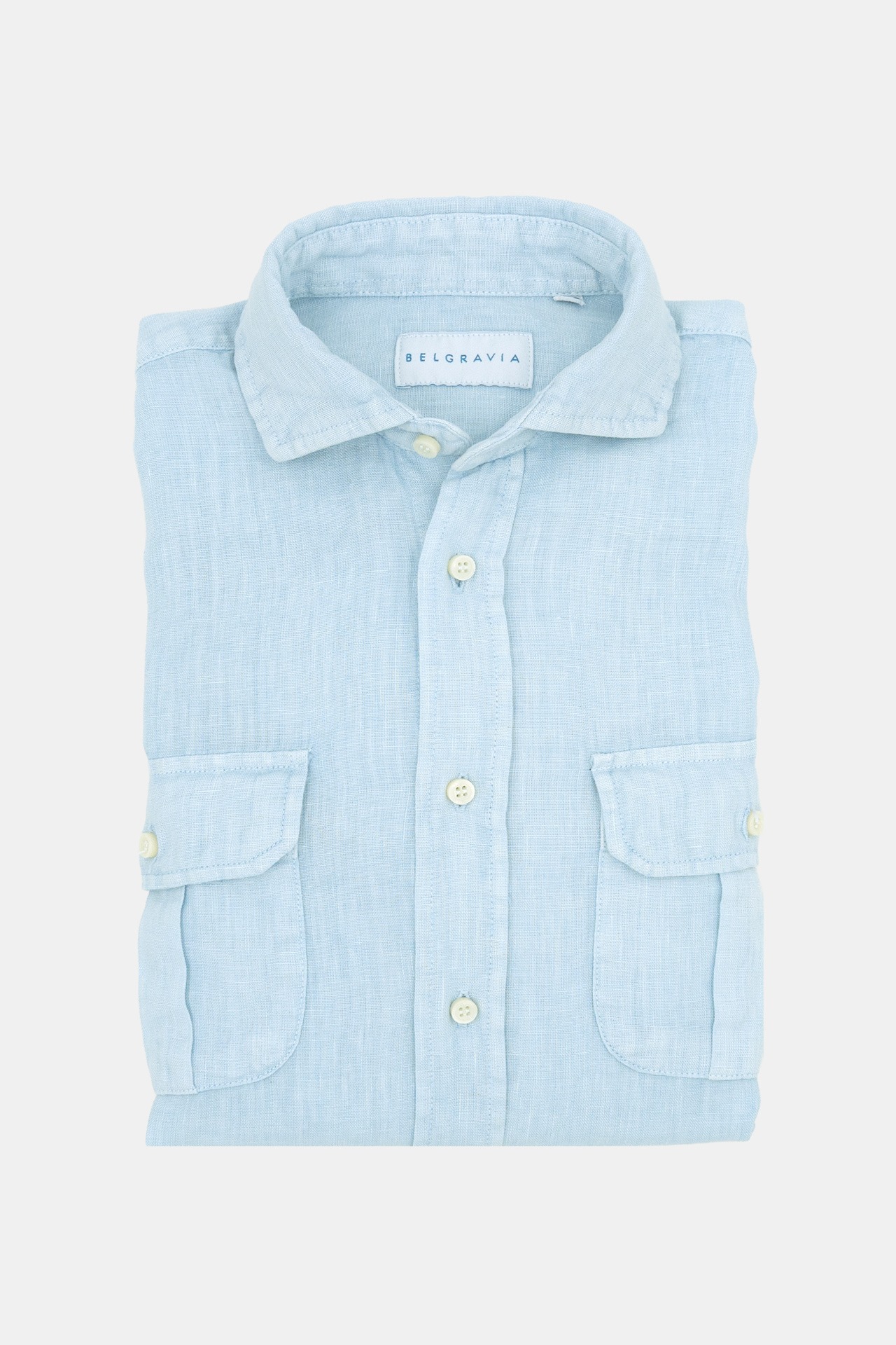 Camisa lino con 2 bolsillos azul claro BELGRAVIA