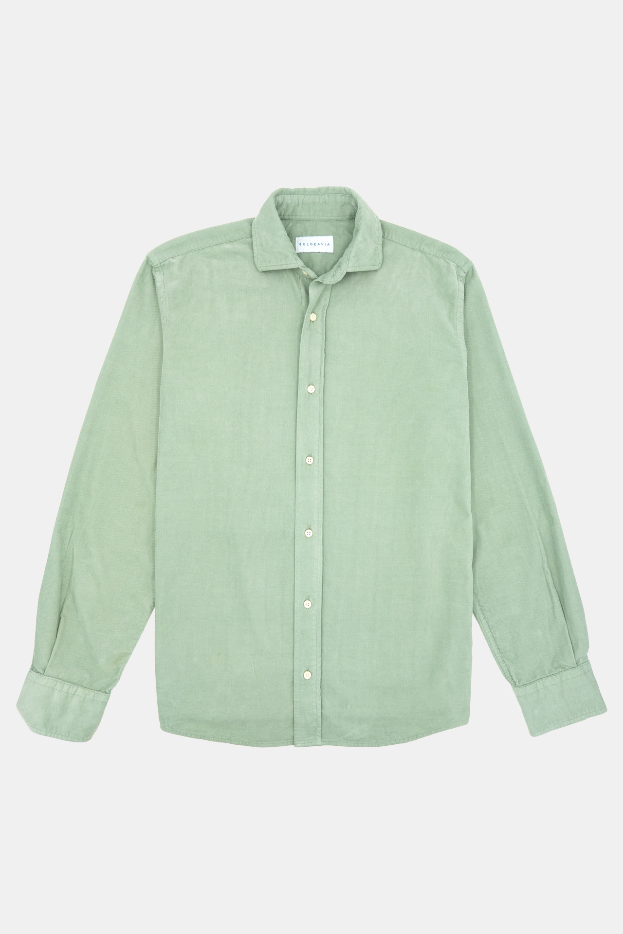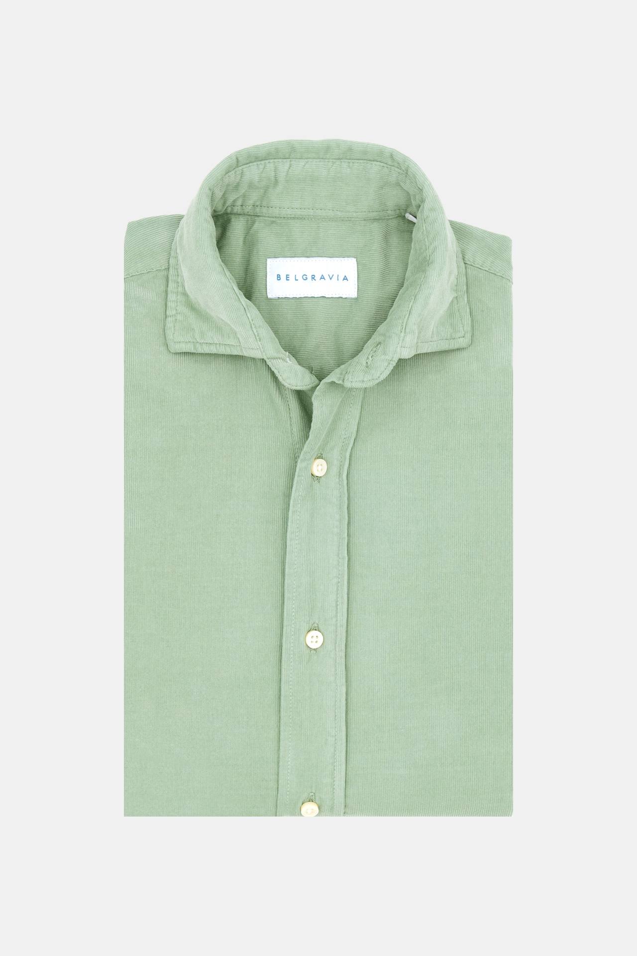 Camisa de manga larga de algodón con tejido de micropana y efecto lavado en color verde. El puño es ajustable con dos botones. El diseño del cuello es tipo italiano.