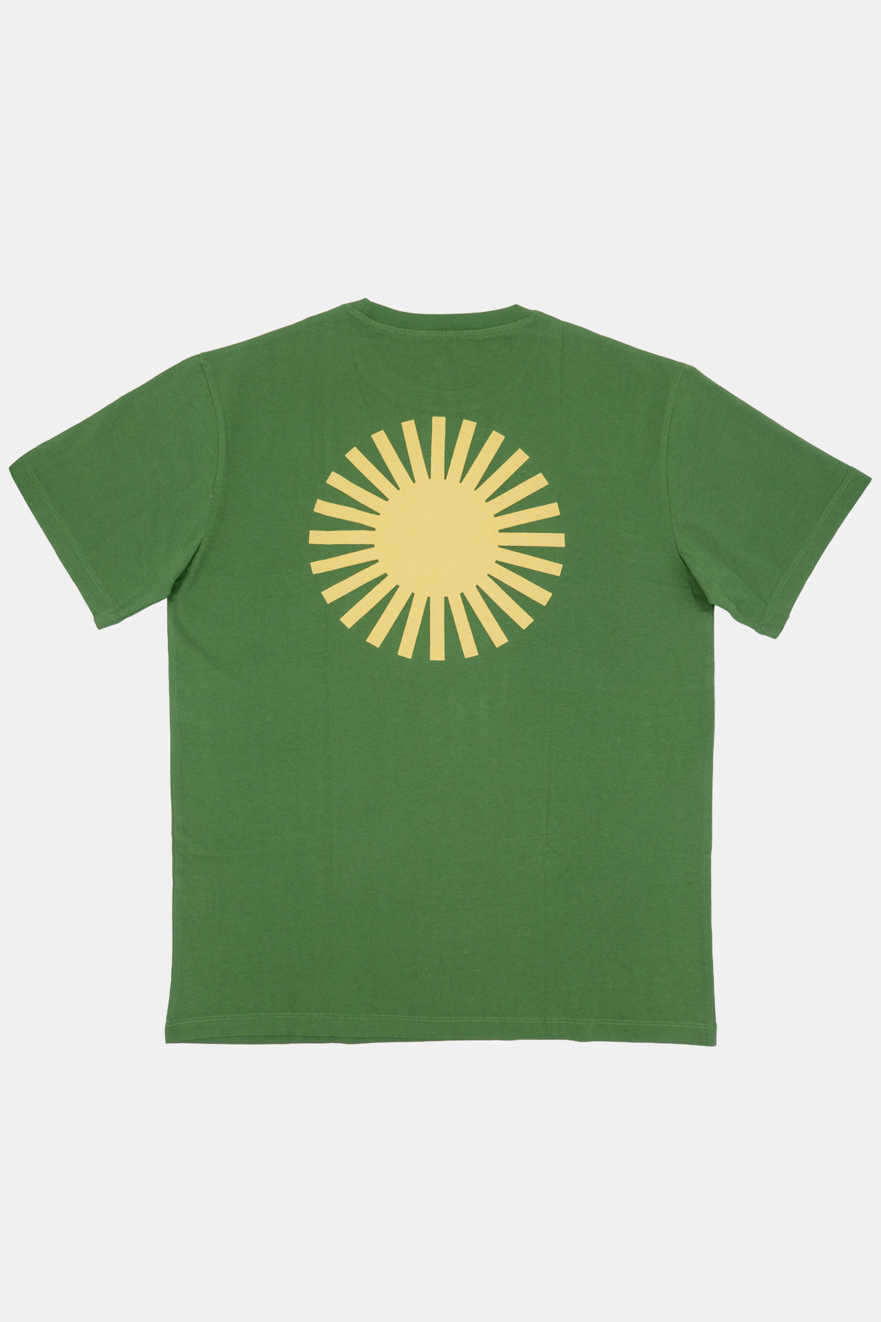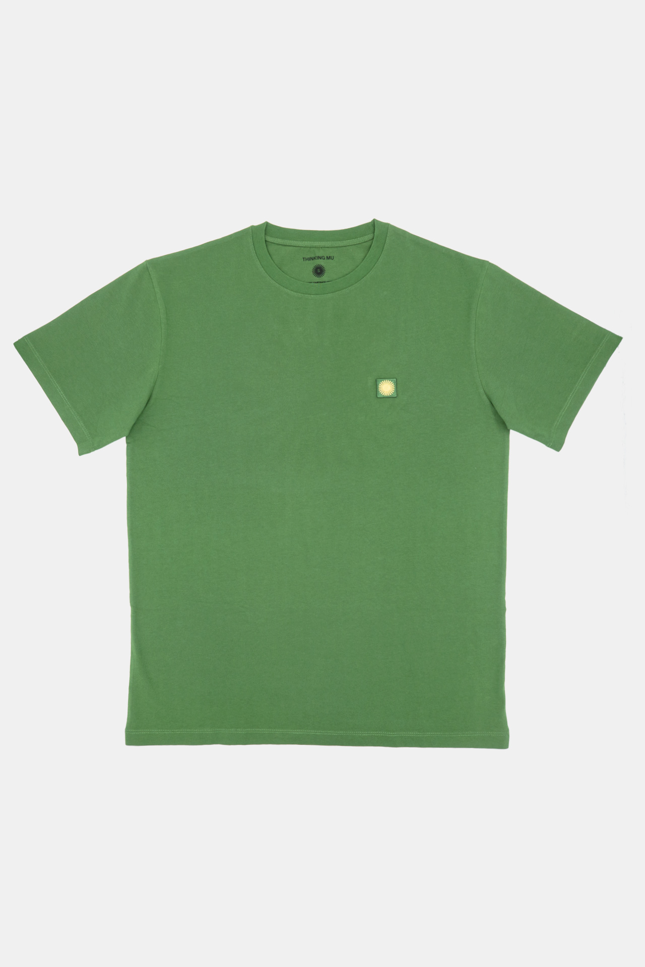 Camiseta cuello caja, de color verde.  Fabricada en algodón con diseño original