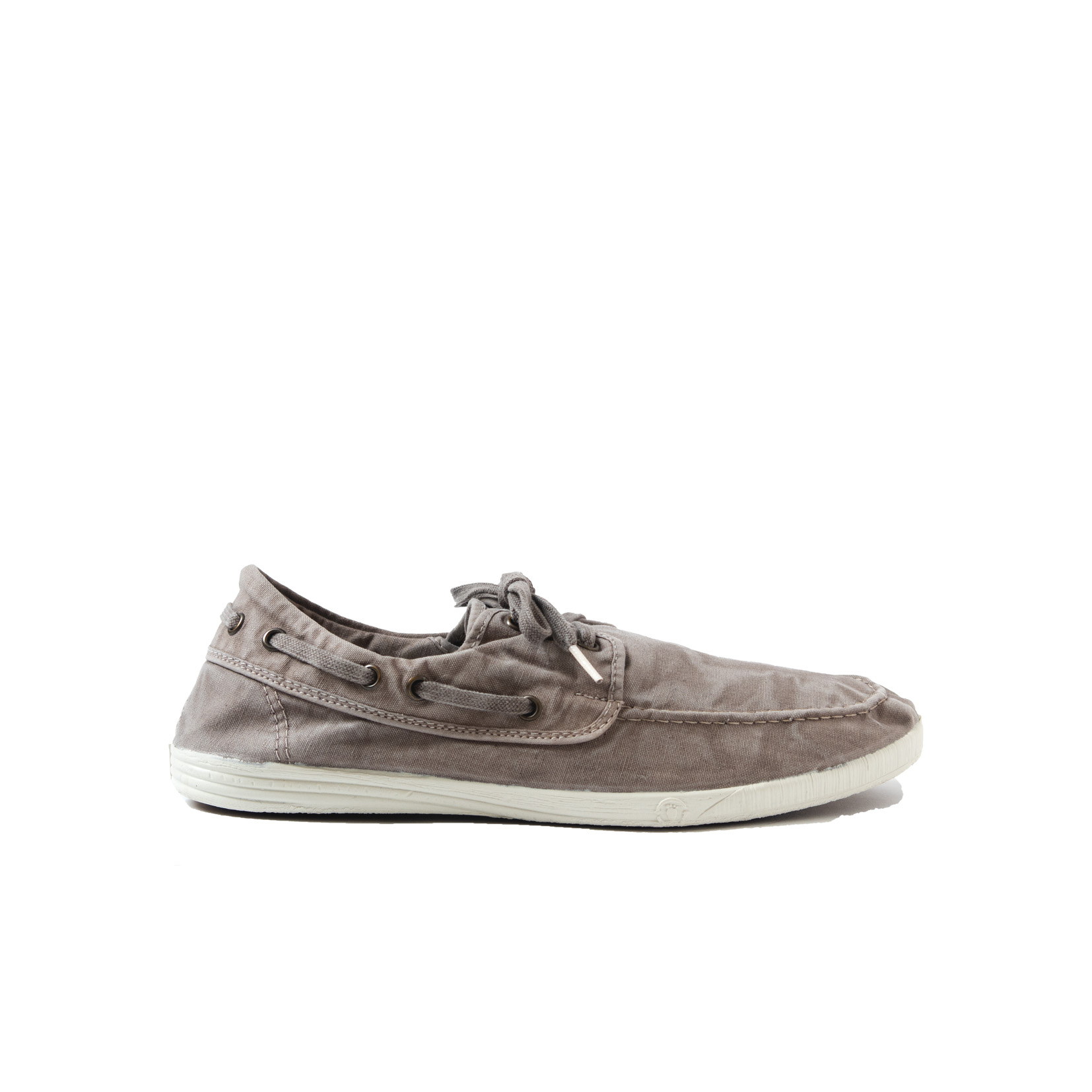 Náutico de loneta en color gris claro, fabricados con algodón 100%, con suela de caucho natural y plantillas extraíbles.