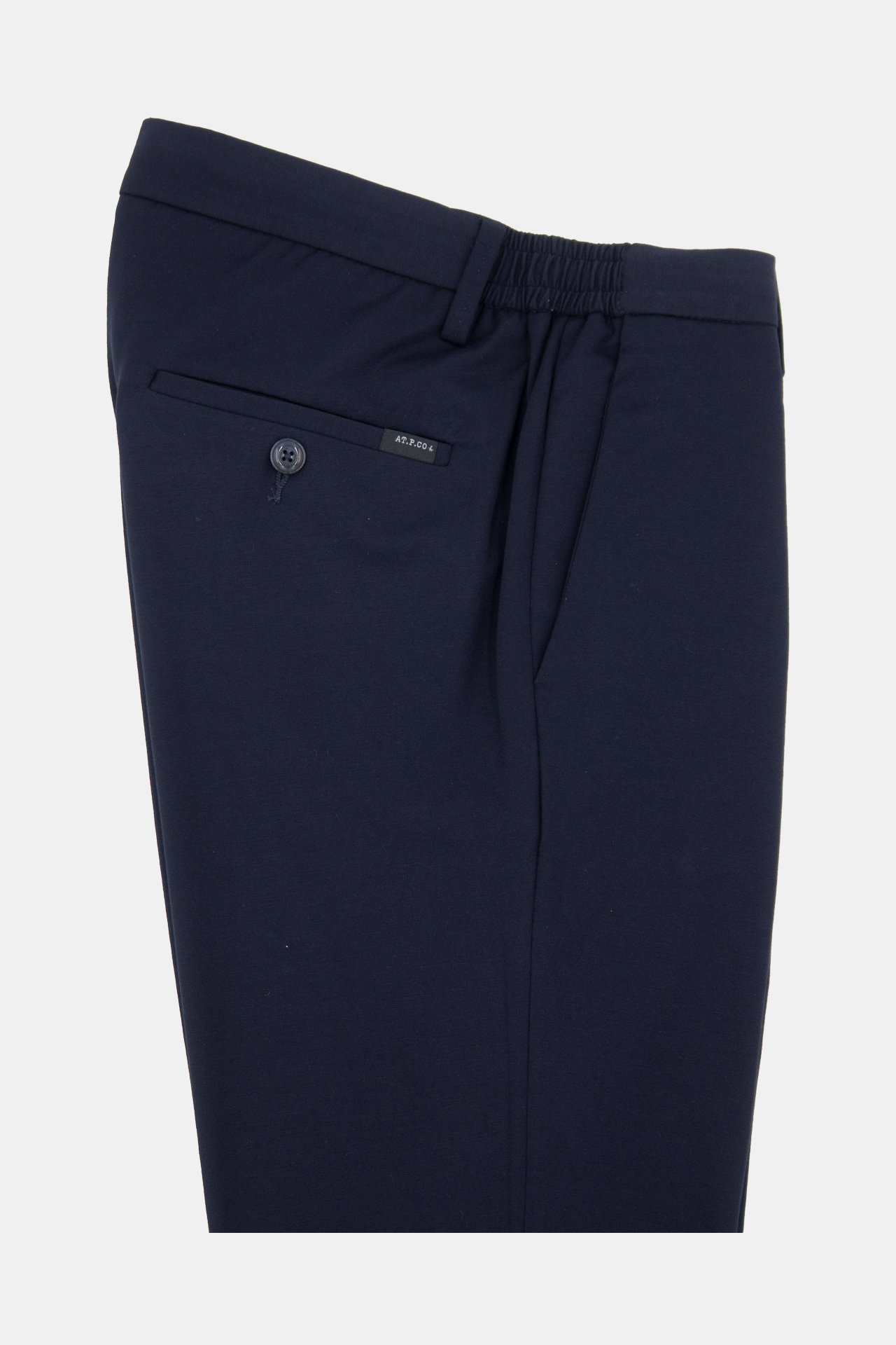 Pantalón modelo BERLINO de diseño italiano, elaborado en tejido técnico suave que aporta flexibilidad y confort. Con cordón interior  y goma en los laterales, trabillas para el uso de cinturón.  Tiene una pinza delantera muy discreta. Sport y elegancia en una misma prenda.