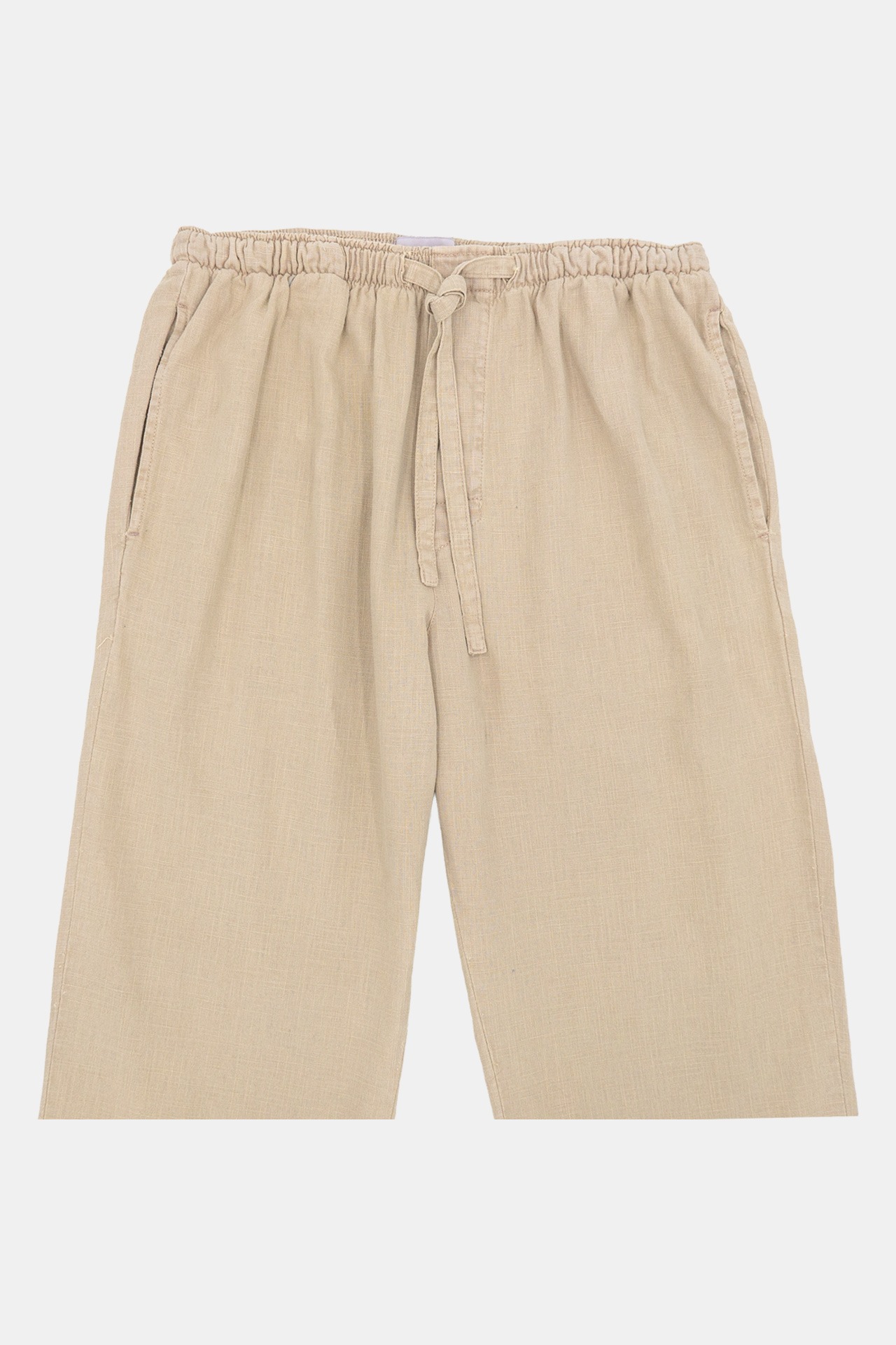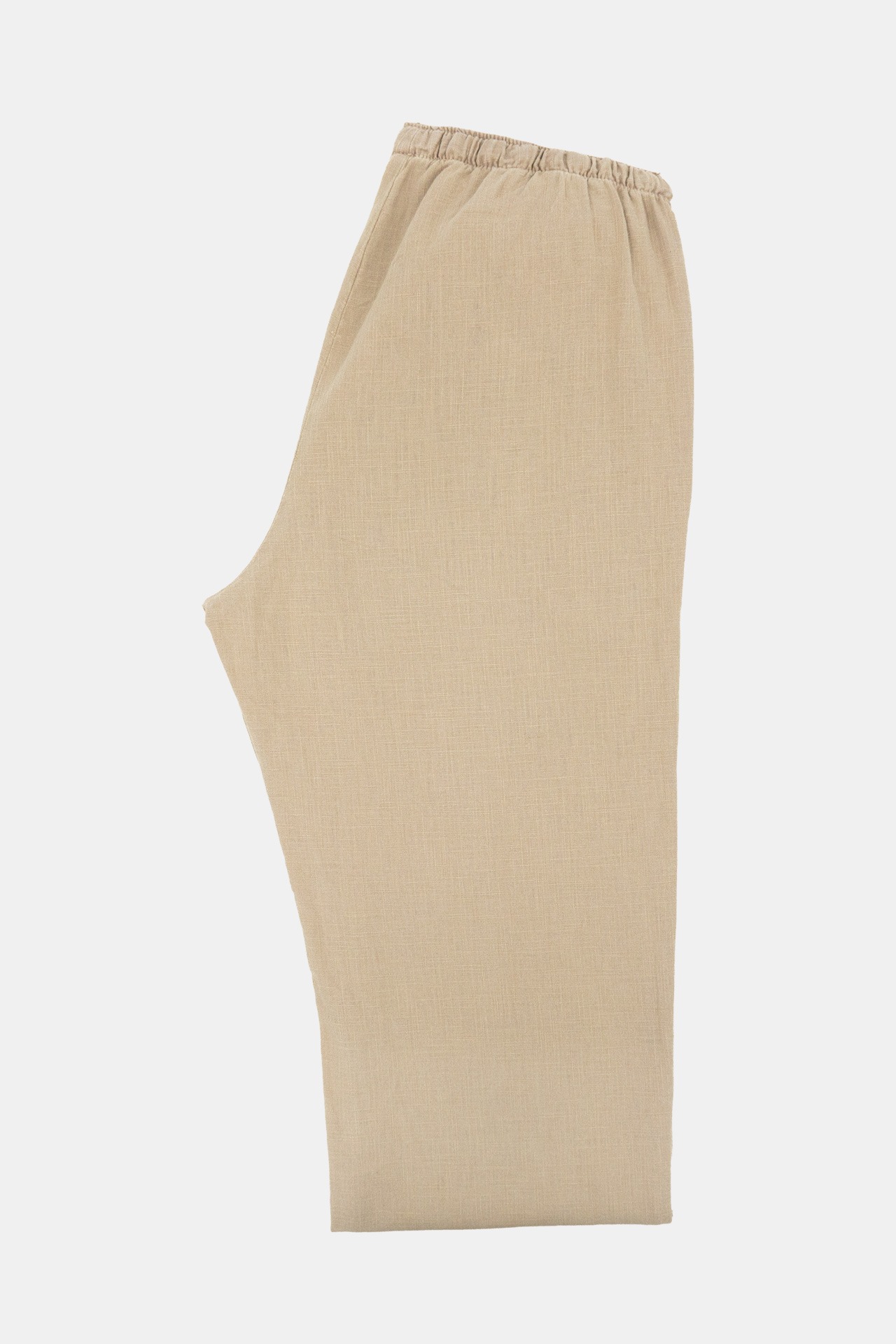Pantalón de cordón  elaborado en lino lavado de color beige de corte recto con bolsillos laterales, fresco y cómodo.