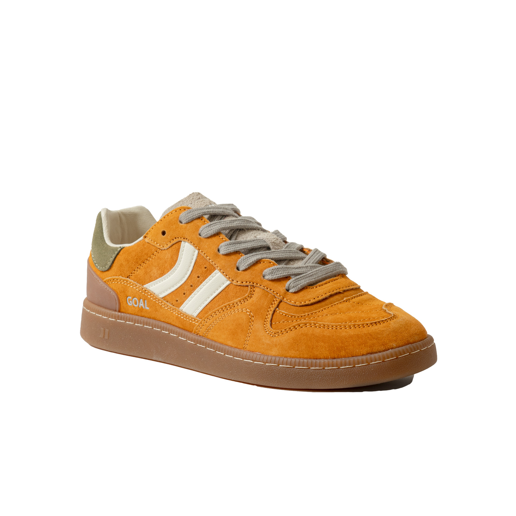 Zapatilla de serraje, interior y lengüeta en piel.  Cuello acolchado. Parte delantera reforzada. Suela flexible de goma/caucho.